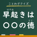 ことわざクイズ:早起きは〇〇の徳。〇に入る漢字とひらがなは何でしょう?